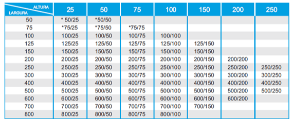 Como opções podem ser solicitadas com tampa (encaixe, pressão ou aparafusada). São fornecidos em medidas múltiplos de 25, quando for perfurada. Sempre em barras de 3 metros.A furação das barras é na medida 7 x 25 mm.